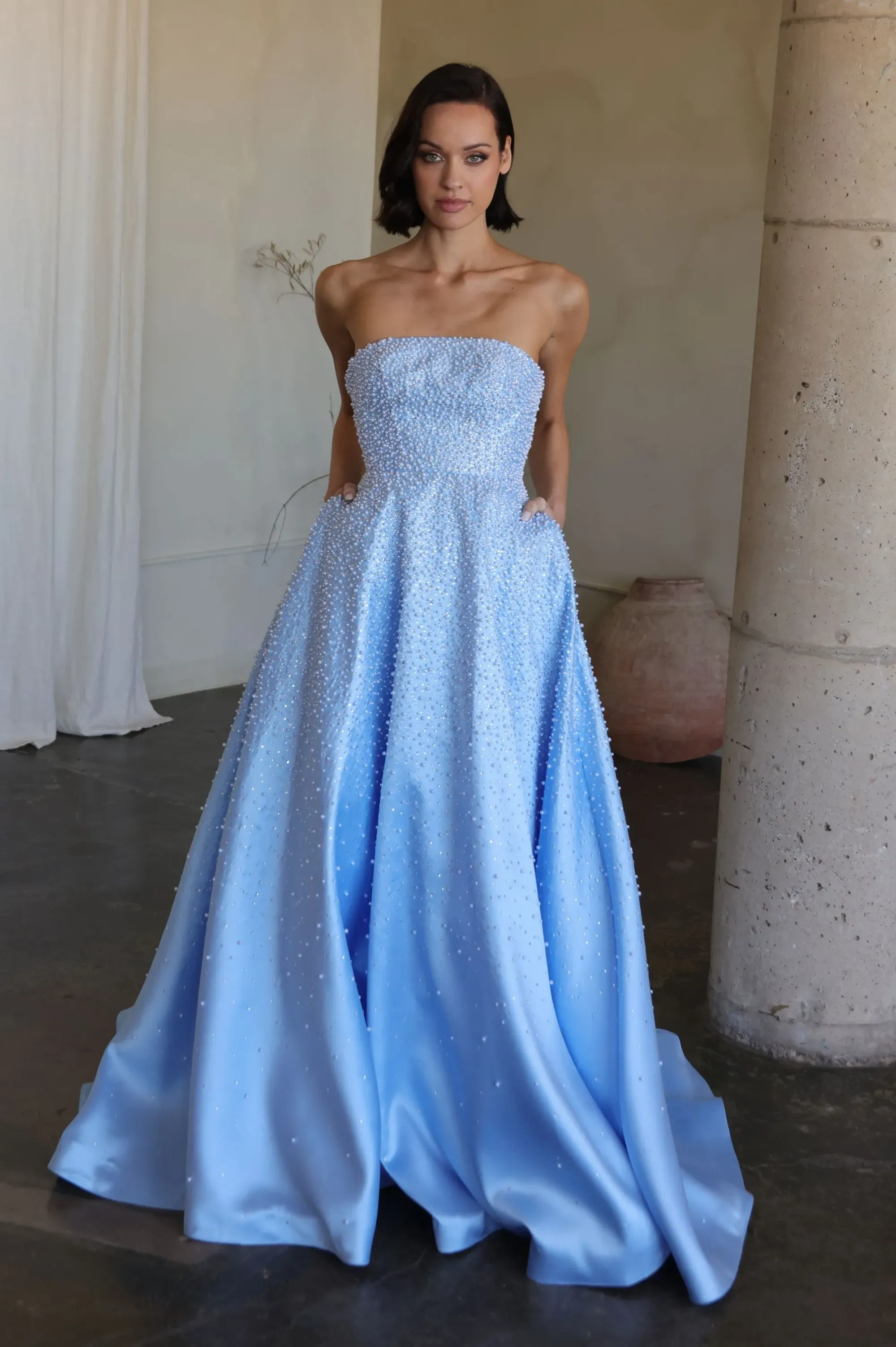 For best results, we advise having a professional seamstress or tailor take your measurements. If you measure in between sizes, we recommend ordering the size larger and tailoring the gown down for a perfect fit. Please note that most gowns will require alterations regardless of measurements.