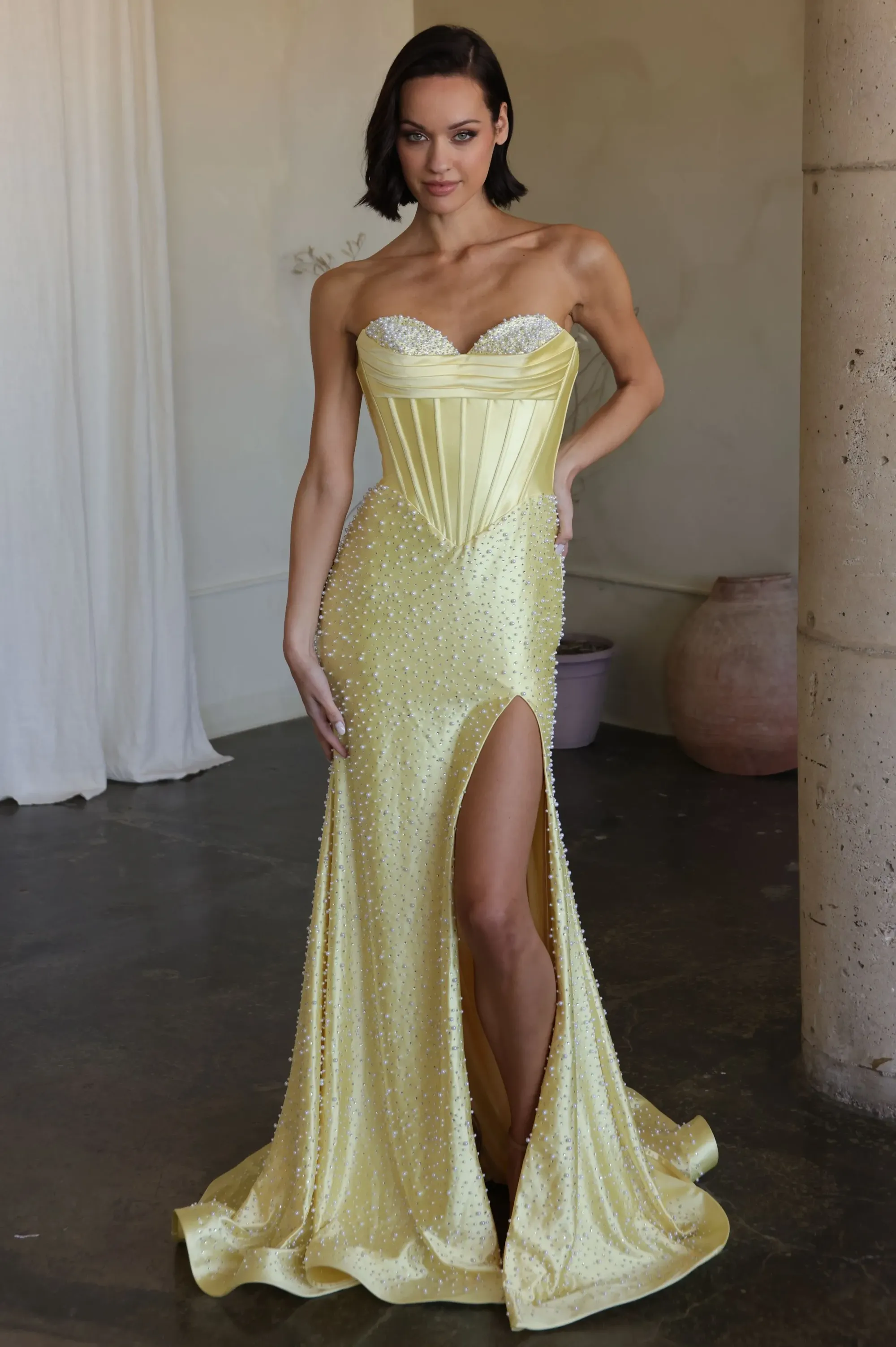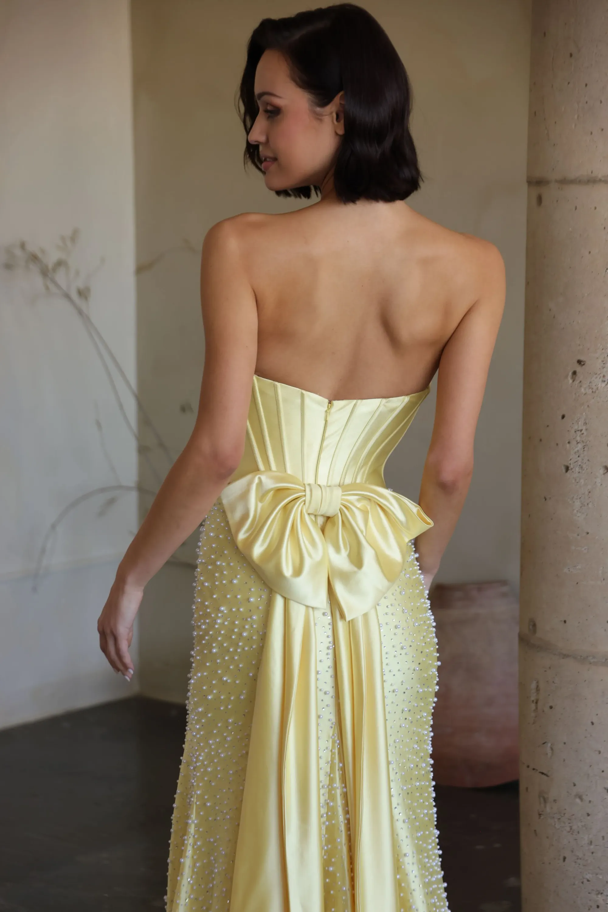 For best results, we advise having a professional seamstress or tailor take your measurements. If you measure in between sizes, we recommend ordering the size larger and tailoring the gown down for a perfect fit. Please note that most gowns will require alterations regardless of measurements.